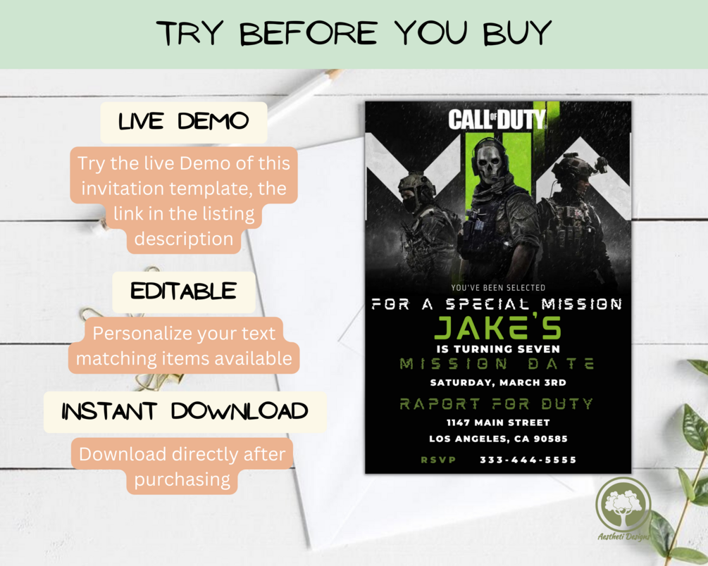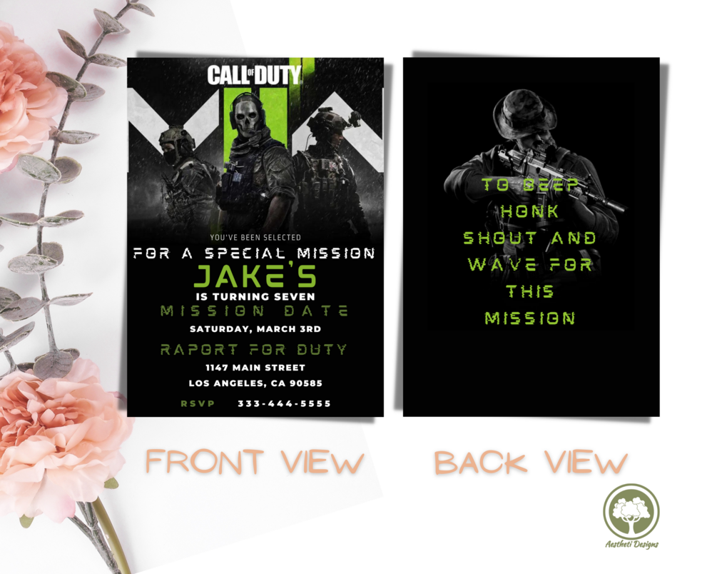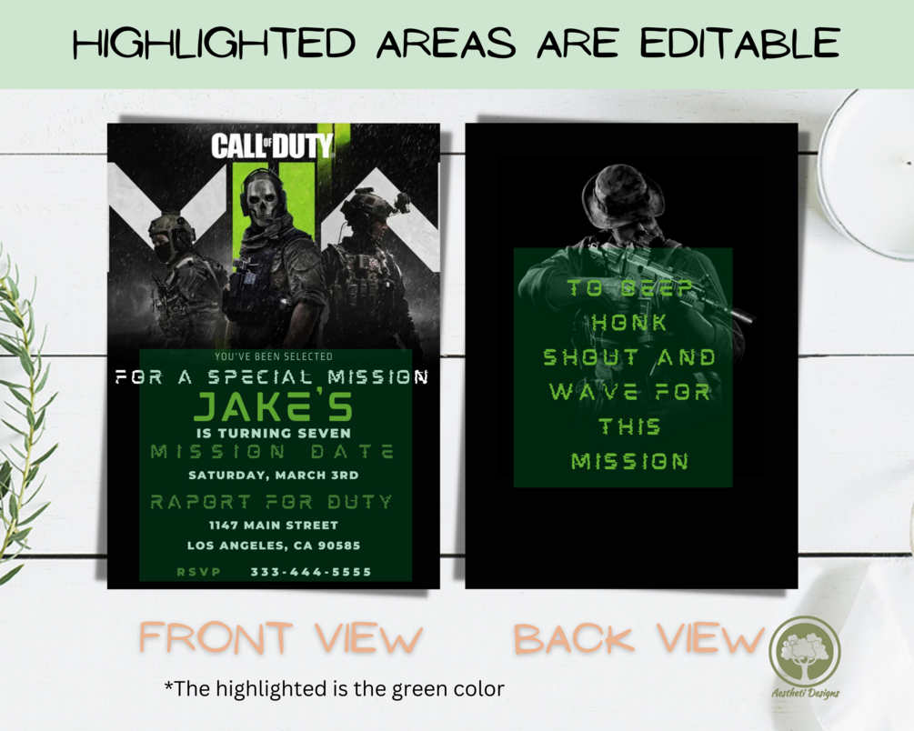 Call Of Duty Birthday Invitation Template, EDITABLE BIRTHDAY PARTY INVITATION, PERSONALIZE, SAVE & DOWNLOAD THROUGH CANVA.COM!